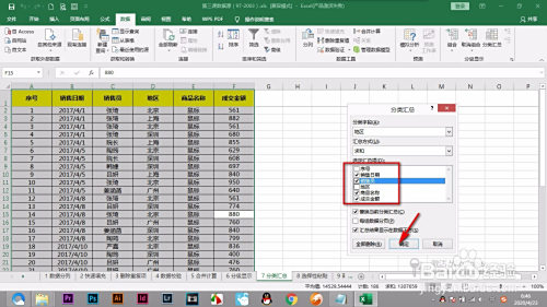 2.分类字段选择——地域,在分类的汇总项中可以多选一些选项。