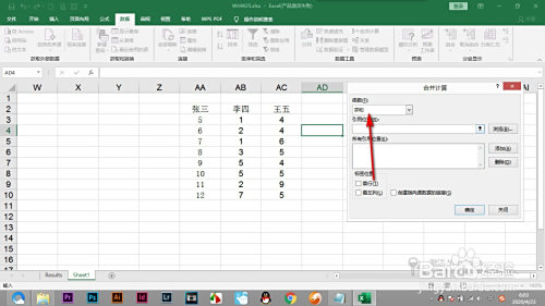 3.在弹出的对话框中找到归并计较按钮,点击一下。