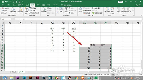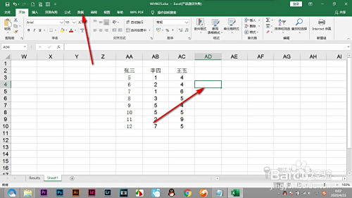 2.点击空白的单位格,定位归并计较的位置,点击数据选项卡。