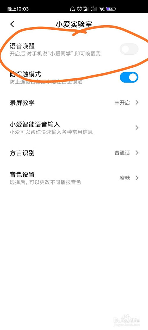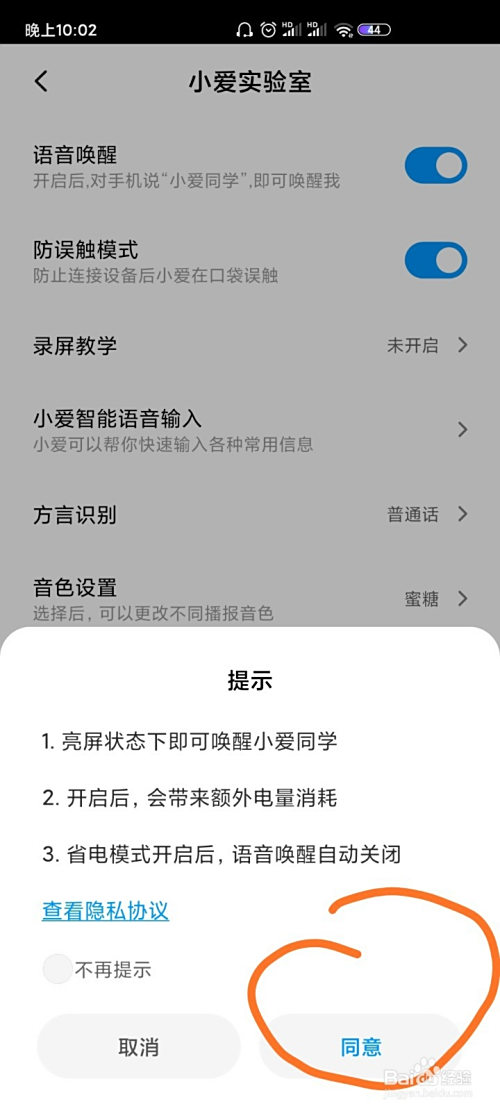 此时可以看到“语音叫醒”,可以点击开启,此时会弹出一个和谈,必需赞成才能利用。