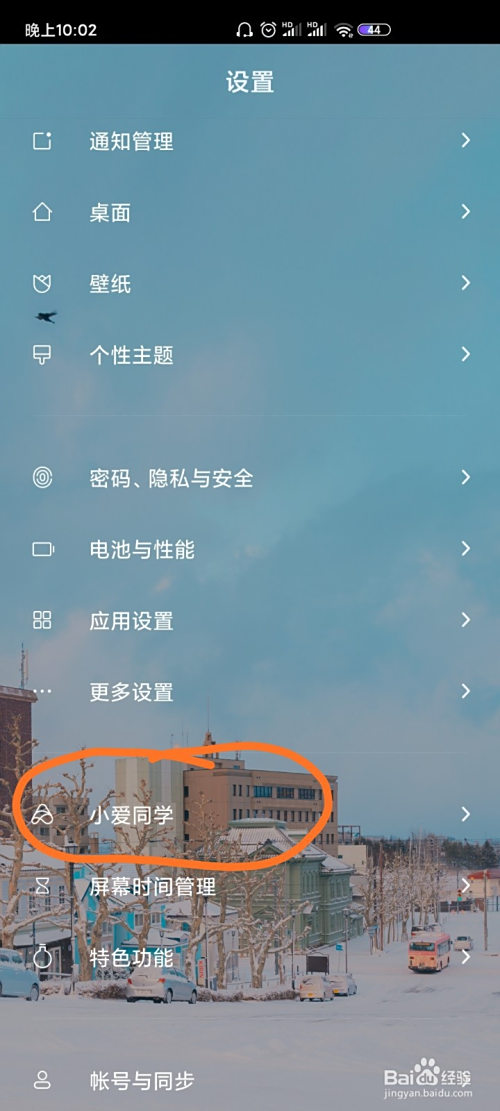 进入设置中,将屏幕往下滑,找到“小爱同窗”。