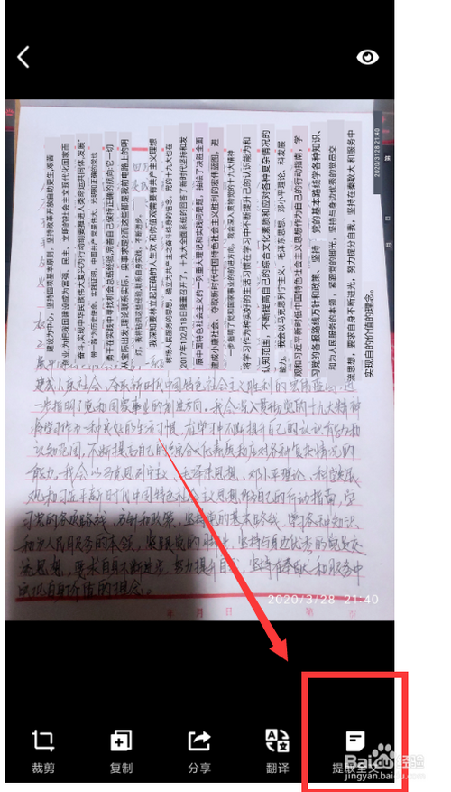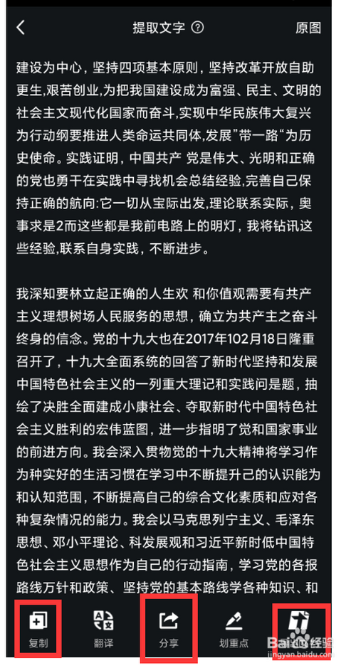 接着就可以看到当作功提取的文字,可以复制粘贴到word,还可以分享给老友,也可以导出当作为文档