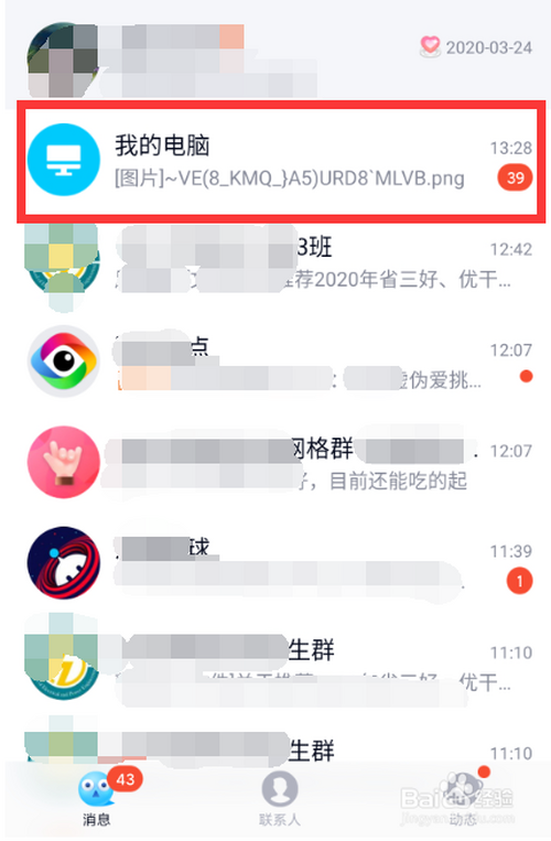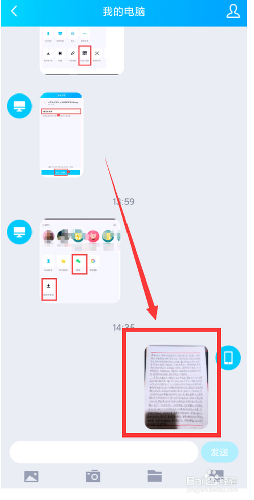 将要提取文字的图片发到一个聊天窗口,这里选择发送到“我的电脑”点击进入