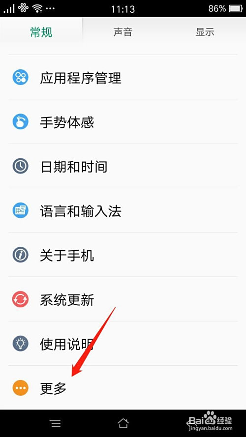进入手机设置界面,标的目的上滑动页面,然后点击页面底部的“更多”选项。