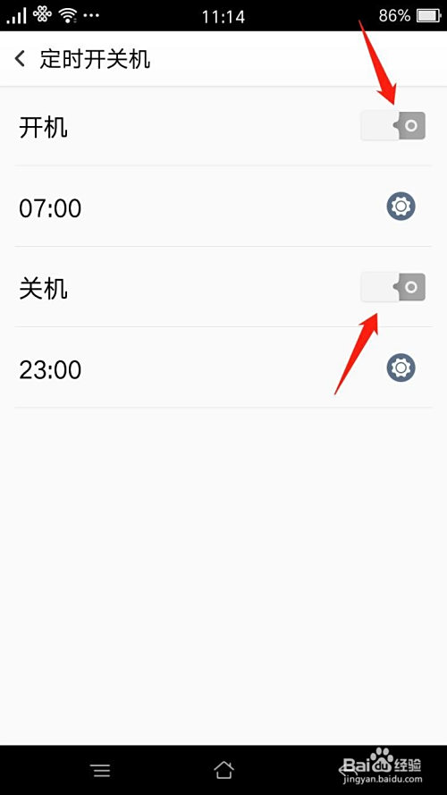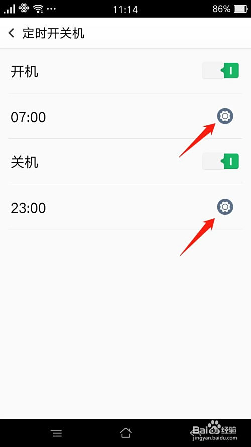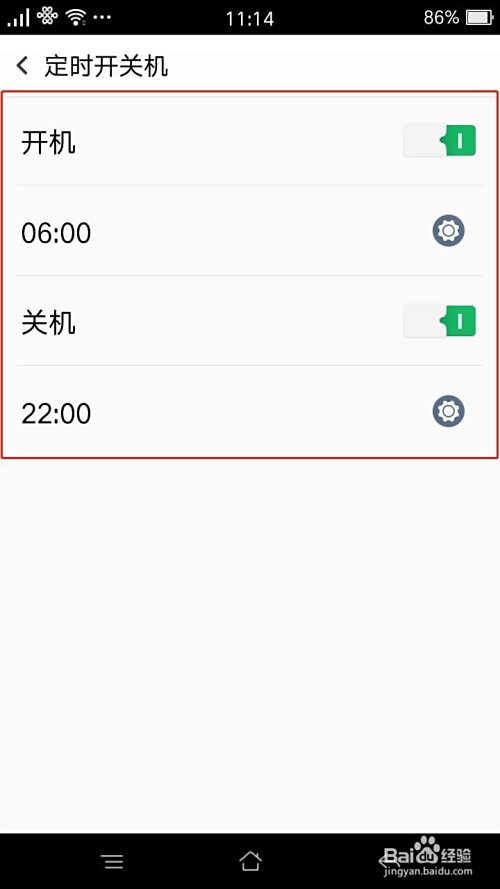 进入按时开关机界面,别离点击“开机”和“关机”的开关,打开开关。