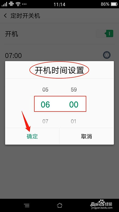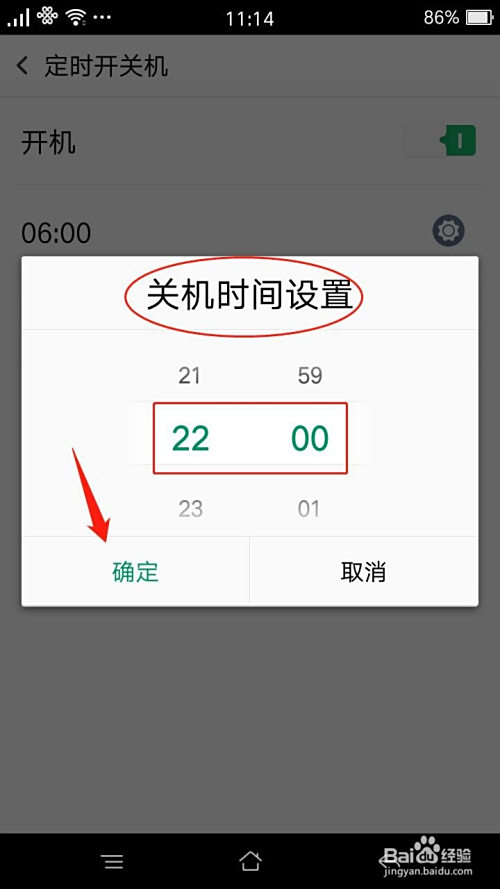 在时候设置界面,按照小我需要设置开机和关机时候,然后点击“确定”。