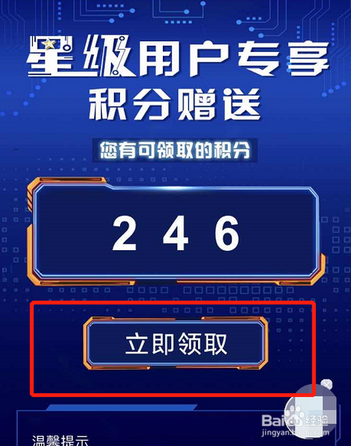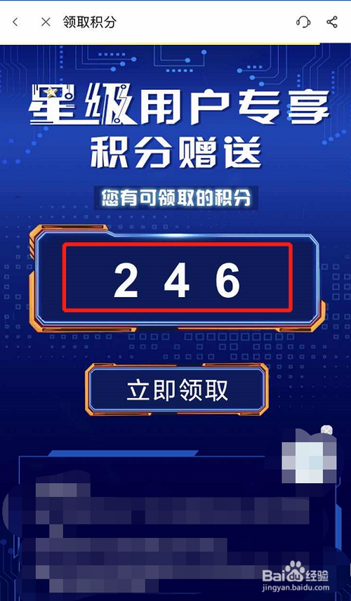 之后就会进入到星级用户专享积分赠予领取页面了,在这个页面内显示了赠予的积分数值。
