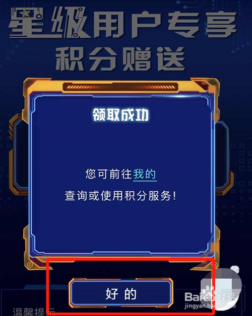 领取当作功后,会呈现弹框提醒,奉告积分领取当作功,并可以在小我中间页面内查询到账积分信息,点击“好的”即可封闭弹框。