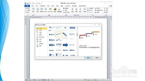 点击插入选项卡——插图组——SmartArt按钮。在跳出的对话框架中选择步调上移流程图图。