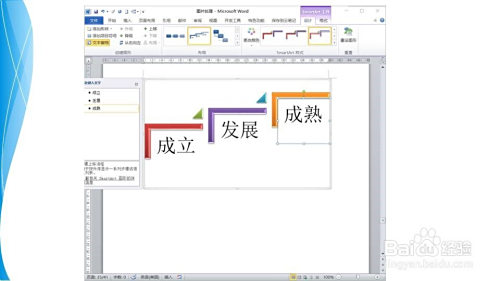 在编纂区呈现一个步调上移流程图图,需要对其进行一些处置,以更美不雅。在SmartArt 东西栏中选择设计院选项卡——样式组,选择本身的颜色