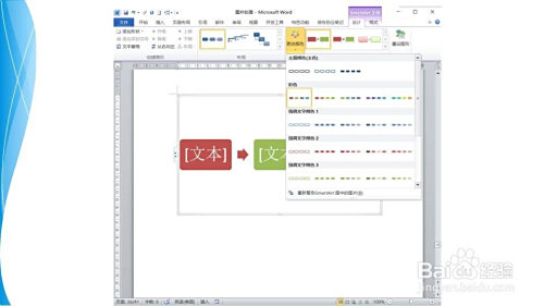 在编纂区呈现一个根基流程图图,需要对其进行一些处置,以更美不雅。在SmartArt 东西栏中选择设计院选项卡——样式组,选择本身的颜色