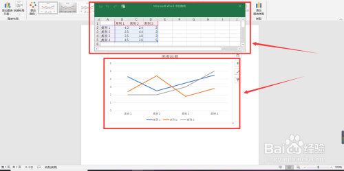 选择Excel工作簿的资料后,将线形图的巨细进行调整,如图所示