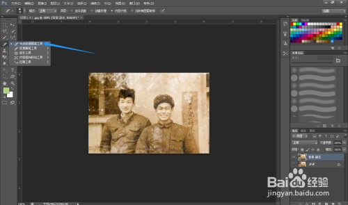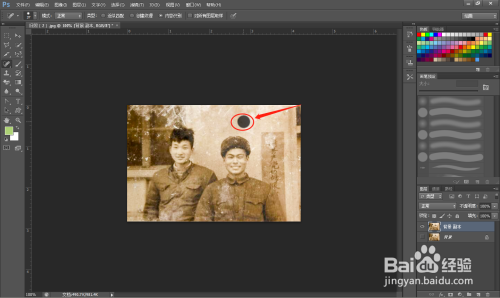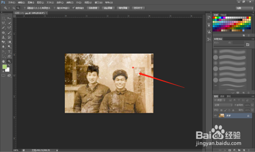 第二步:打开一张有污点的原始旧照片,看图解