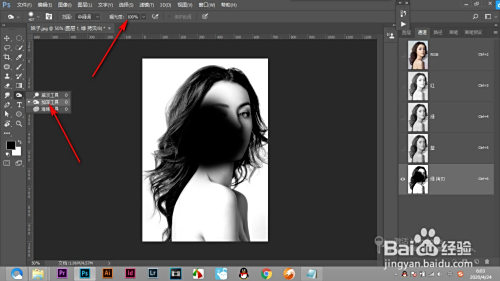 4.这个时辰就需要点击加深东西,将曝光度调整为百分之百。