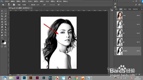 1.我们将图片打开通道,找到明暗对比最强烈的通道复制出来。