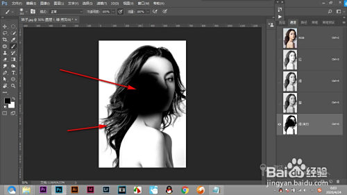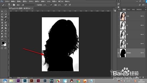 3.若是我们直接利用黑色的画笔,在头发丝的位置是无法进行切确的涂抹的。