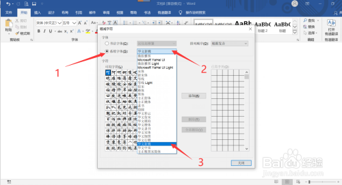 第三步:选择【系统文字】,点击其右侧的下拉箭头,肆意选择一个字体【汉文新魏】