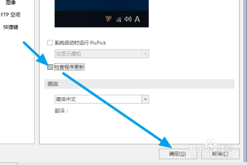 这里我们去失落勾选查抄程序更新,最后点击确认即可。这样今后它就不会提醒有新版本了。