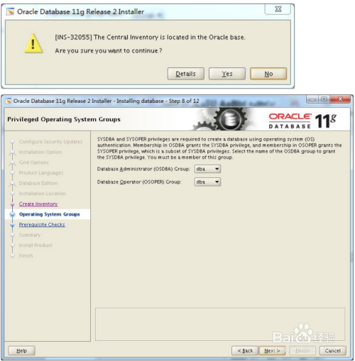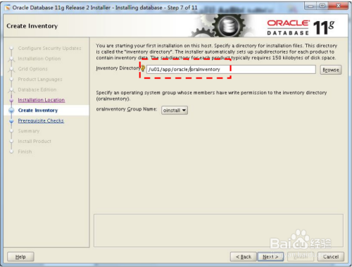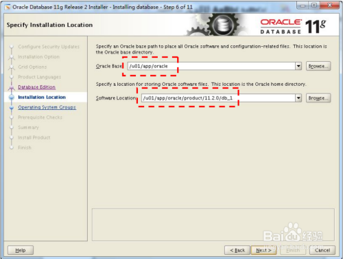 注重确定$ORACLE_BASE 变量和$ORACLE_HOME 变量与情况变量连结一致,点击“Next”。