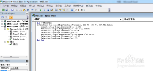 5.在VBA编纂界面,写入指定的VBA代码,然后点击封闭按钮。
