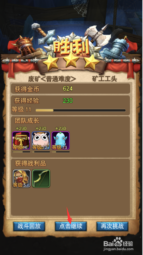 6.本关卡奖励230点经验,点击下方点击继续按钮分开副本。
