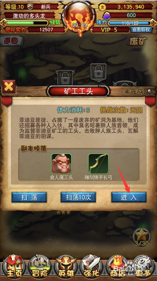 1.点击本家儿菜单冒险,再点击子菜单副本。