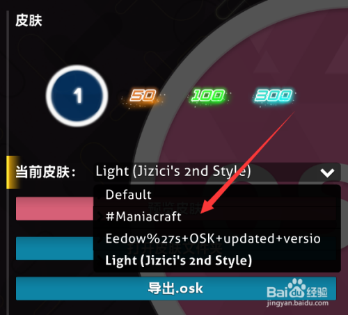 最后,我们在游戏的设置界面中,找到“皮肤”选项卡,我们在选项卡中弹出下拉菜单,在菜单中即可选择本身适才安装的皮肤文件啦~
