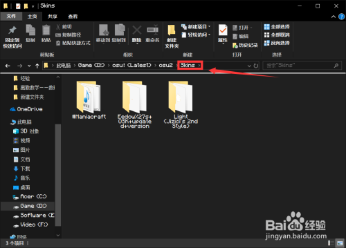 我们下载好的皮肤文件,一般都为压缩包文件,我们需要利用压缩文件对文件进行解压,并将解压出来的文件夹放入osu源文件夹的Skins文件夹中。