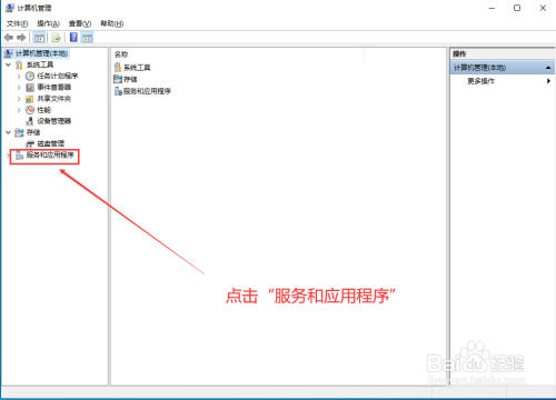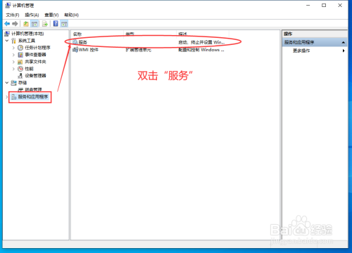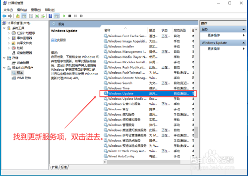 进入计较机办理后,点击最下方的"办事和应用程序",然后在右侧双击"办事",进去寻找系统更新的对应项目“Windows Update"