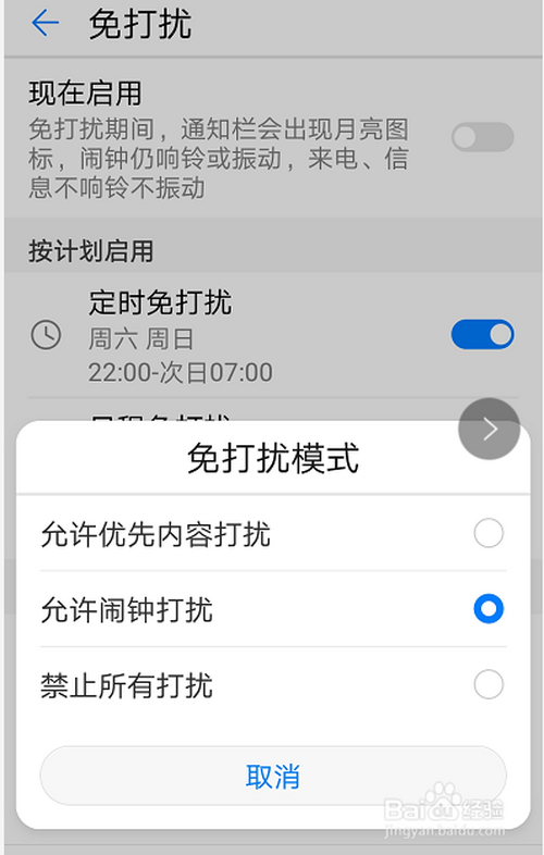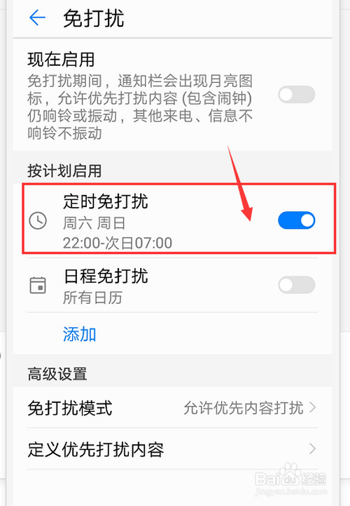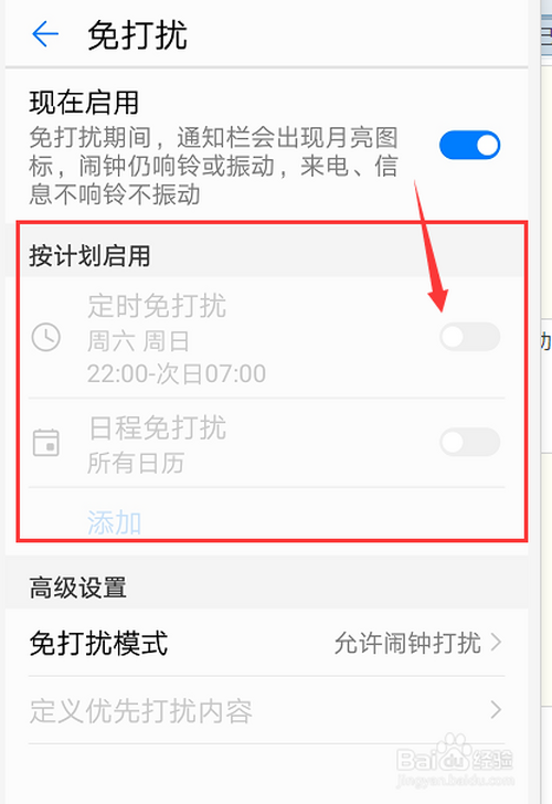 封闭此刻启用后,可以按打算启用免打搅,设置按时免打搅。