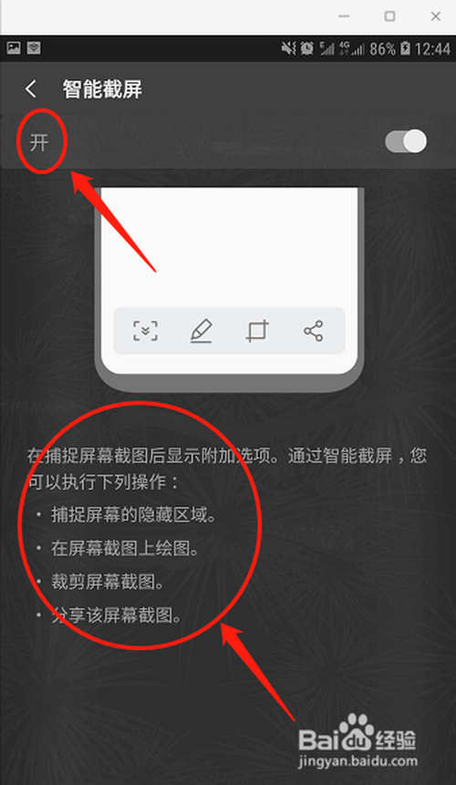 第四步,开启智能截屏,我们可以画图,裁剪等。