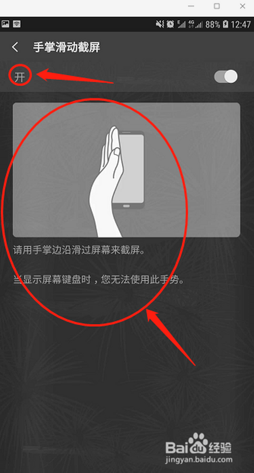 第六步,打开手掌滑动截屏后,按照截屏要求截屏就可以了。