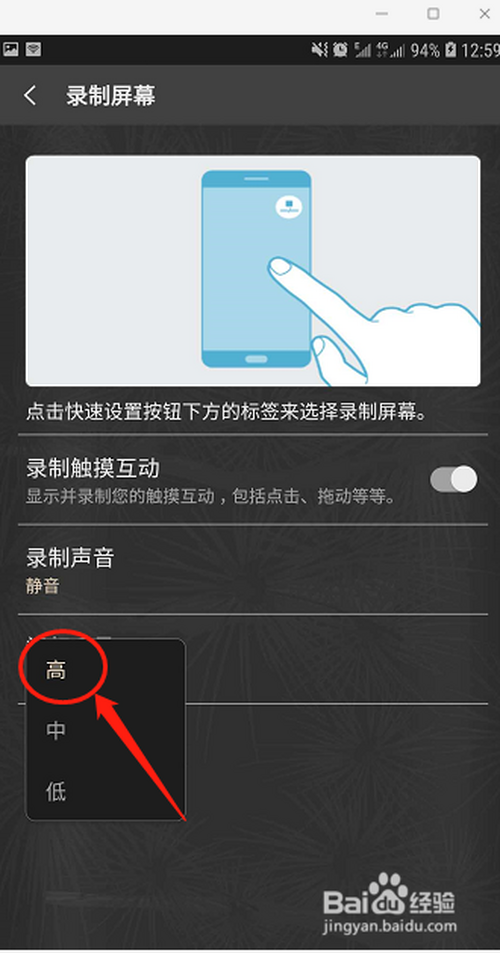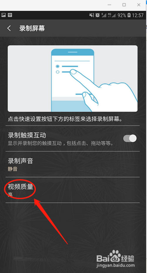 第六步,点击视频质量,选择高质量,选择完当作后,录制就可以了。