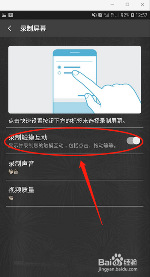 第四步,开启录制触摸互动选项。