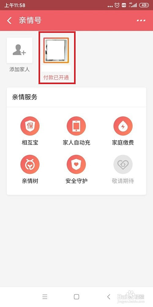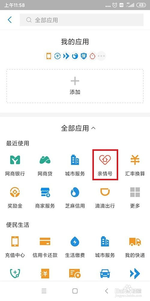 进入之后,我们点一下亲情号,如图。