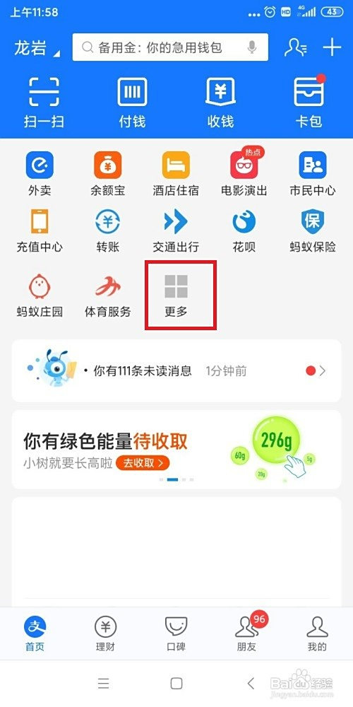 进入支付宝今后,我们点一下更多这边,如图。