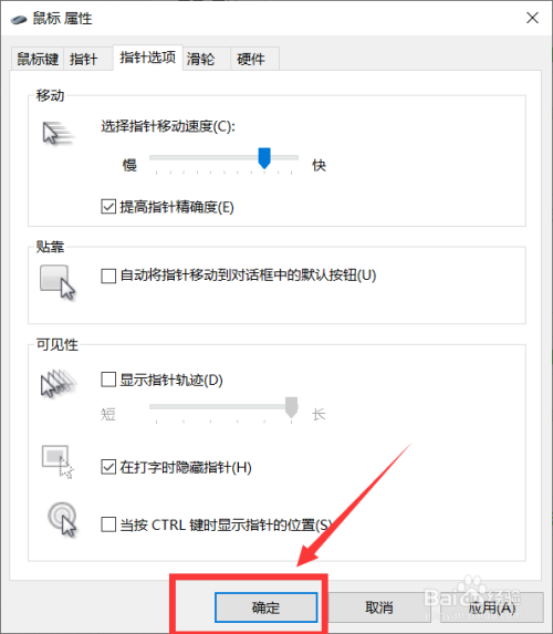 在鼠标属性页面点击“指针选项”,接着在“移动”中就可以拖动滑块设置鼠标指针的移动速度