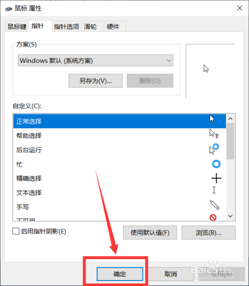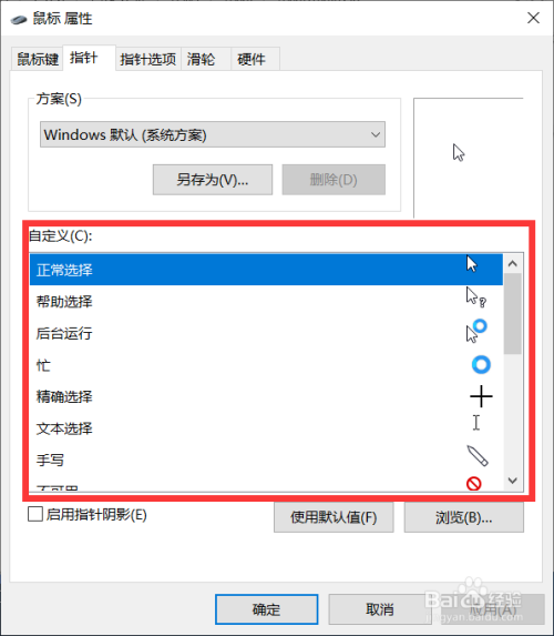4. 接着在“自界说”栏中选择本身想要设置的光标外形,选择好今后点击下边的“确定”即可