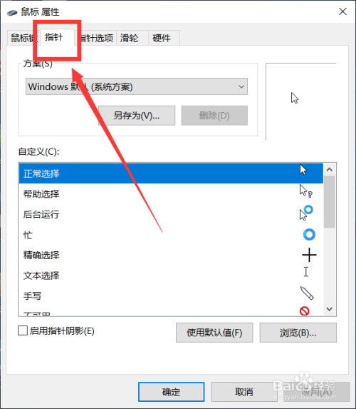 在鼠标属性页面点击“指针”
