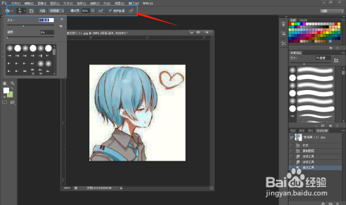 第五步:设置加深东西的画笔巨细模式参数;看图