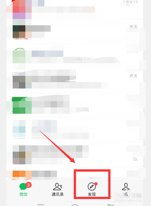 第一:手机登录微信点击下方【发现】选项。