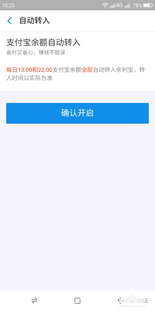 进入【余额主动转入】页面后,点击【确认开启】即可