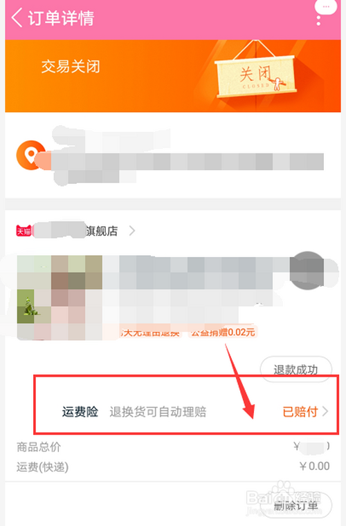 点击金额上方的【运费险】,查看运费险详情。