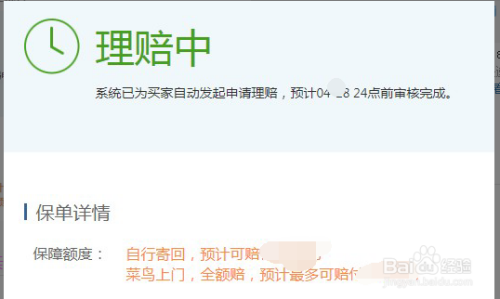 运费险显示在理赔中,可以看到估计理赔当作功时候。