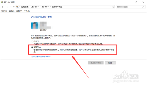 4. 点击“更改账户类型”