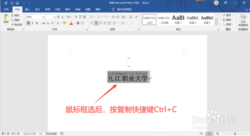 3、鼠标框选文字,按复制快捷键Ctrl+C