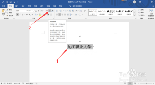 第一步:输入文字并框选文字,点击【起头】选项卡下的【文】(如图所示)