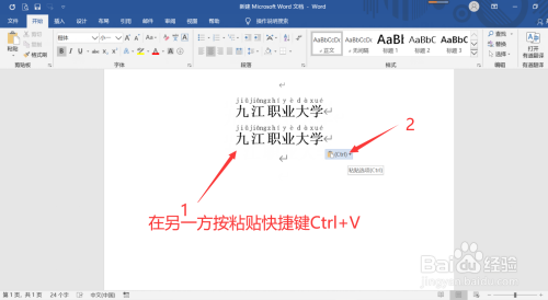 第四步:在另一行按粘贴快捷键Ctrl+V