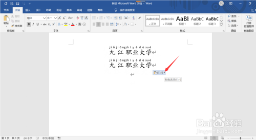 第五步:点击【ctrl粘贴选项】右侧的下拉箭头
