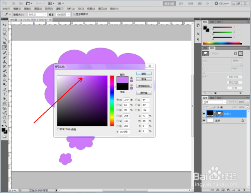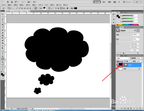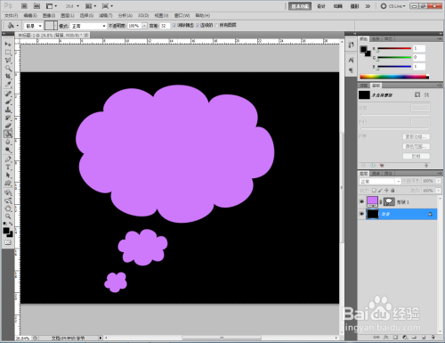 选择台词框选项栏中云形思考台词框,绘制出云形思考台词框。